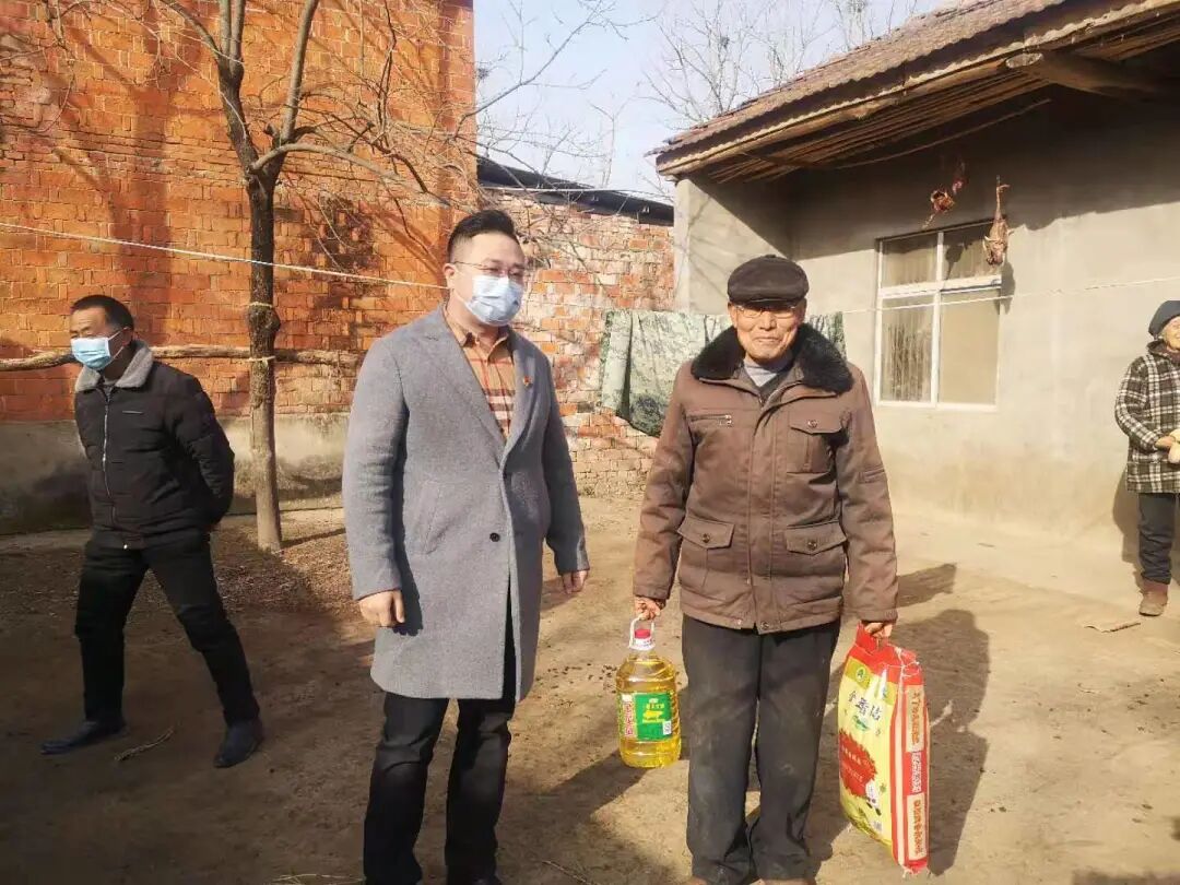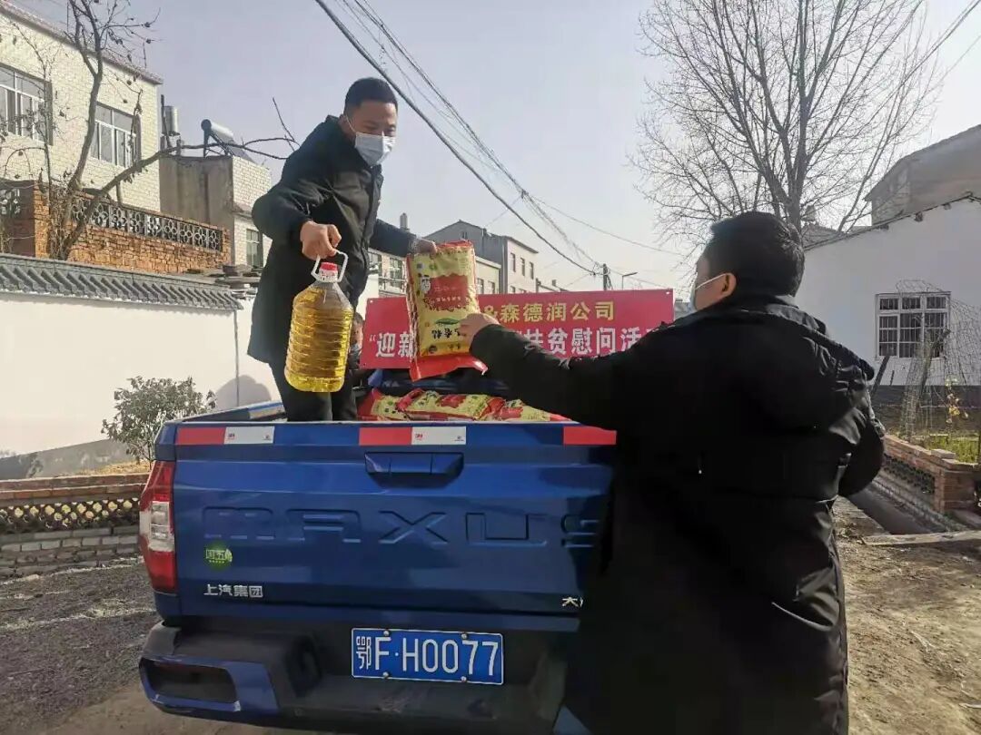 春节将至,岁寒情深。在2021年新春佳节来临之际,1月15日,团区委、湖北森德润投资有限公司为伙牌镇五龙村贫困户送去了米、油等生活用品 ,为他们送去慰问物资和节前祝福。